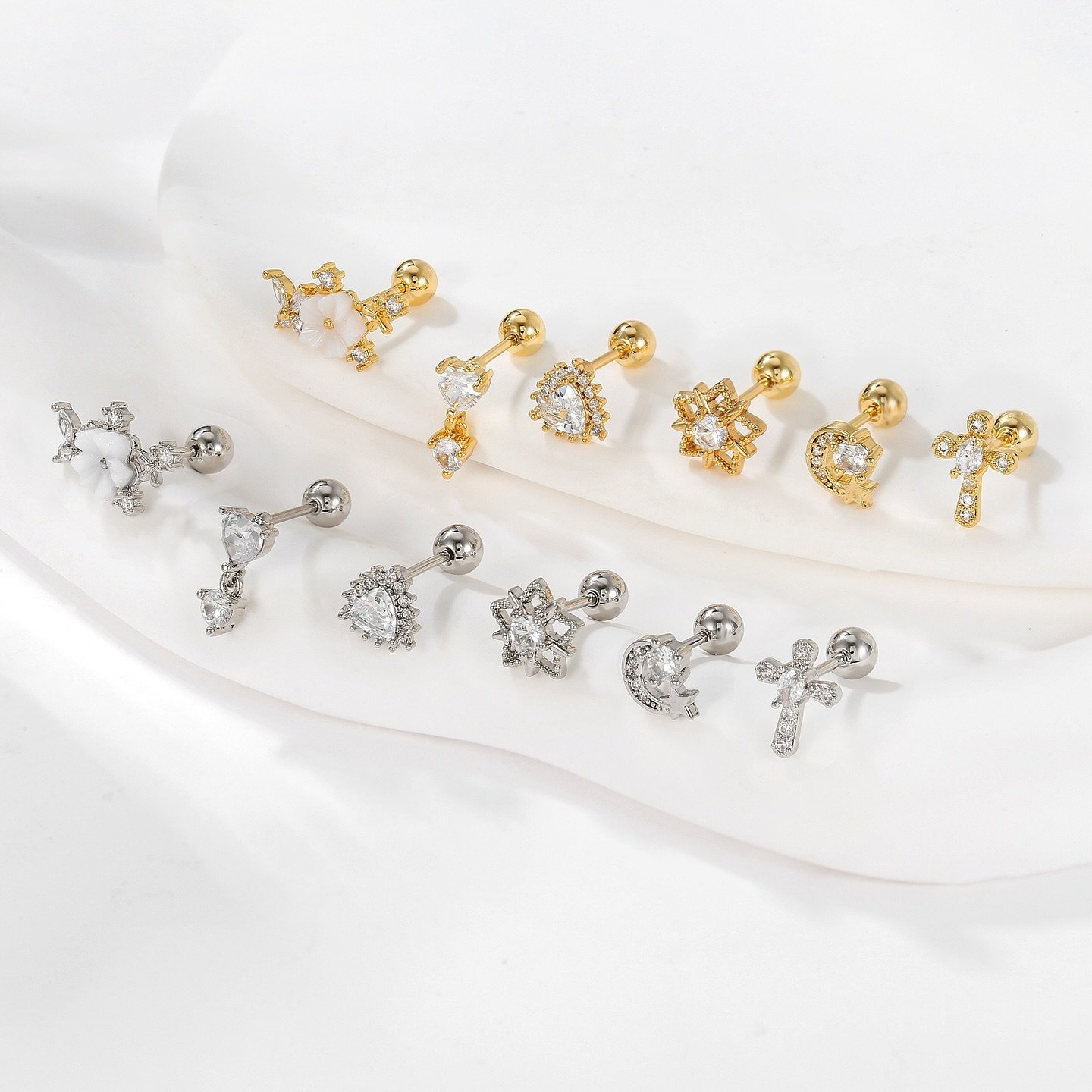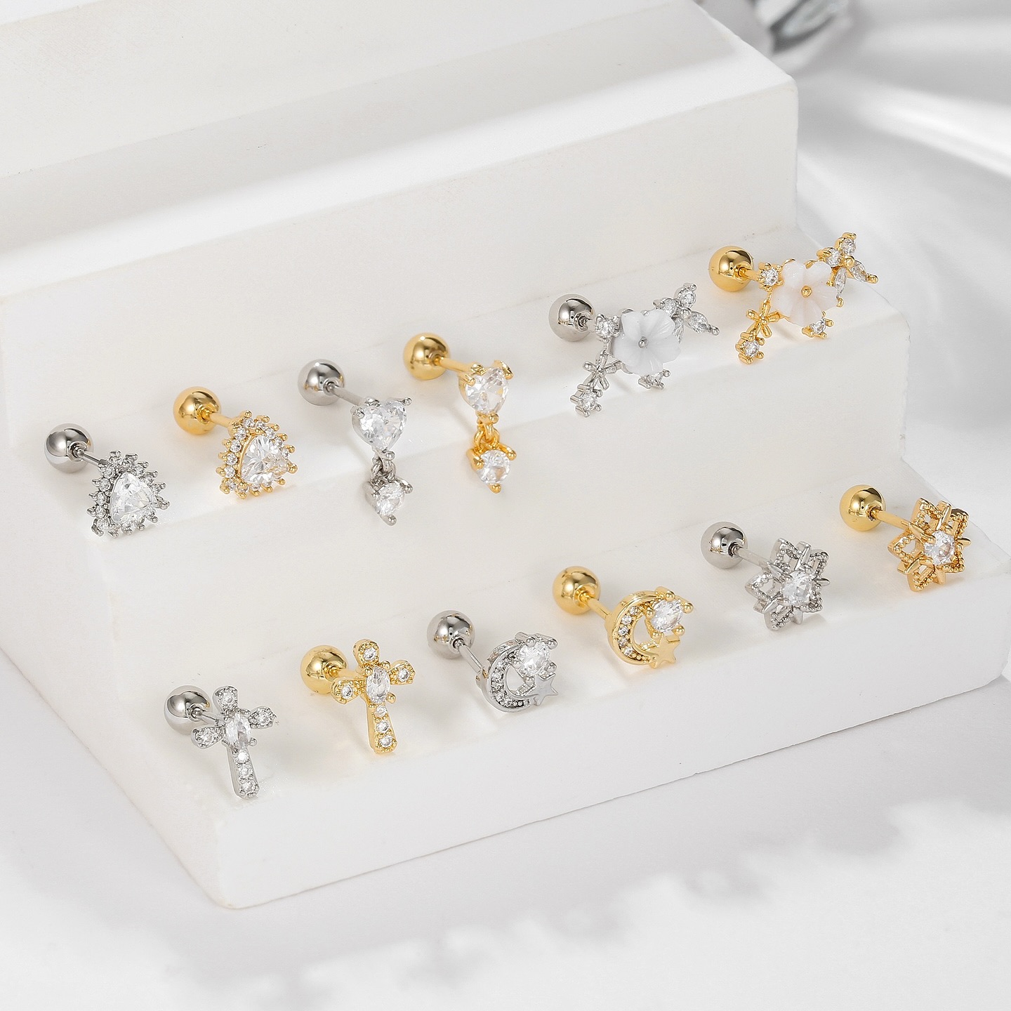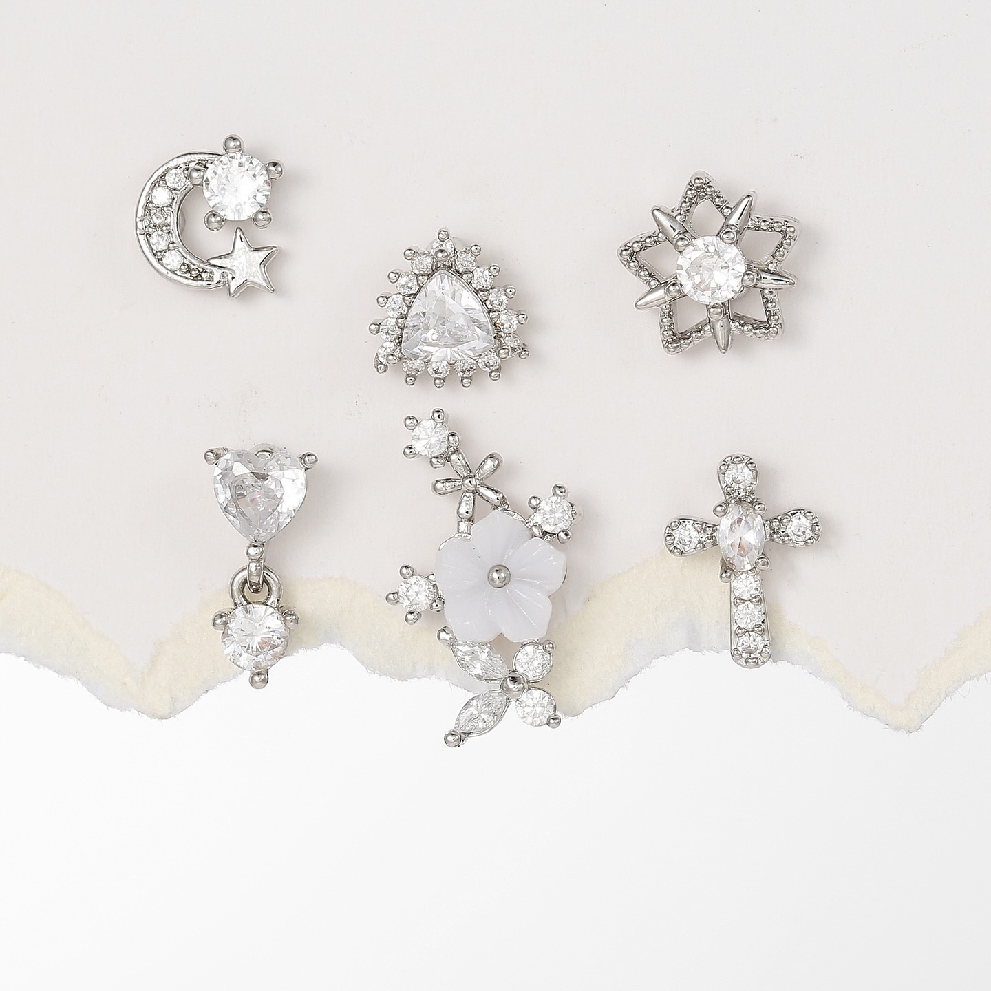 醫療鋼微鑲仿鑽單隻耳環套裝 A(一套6隻)