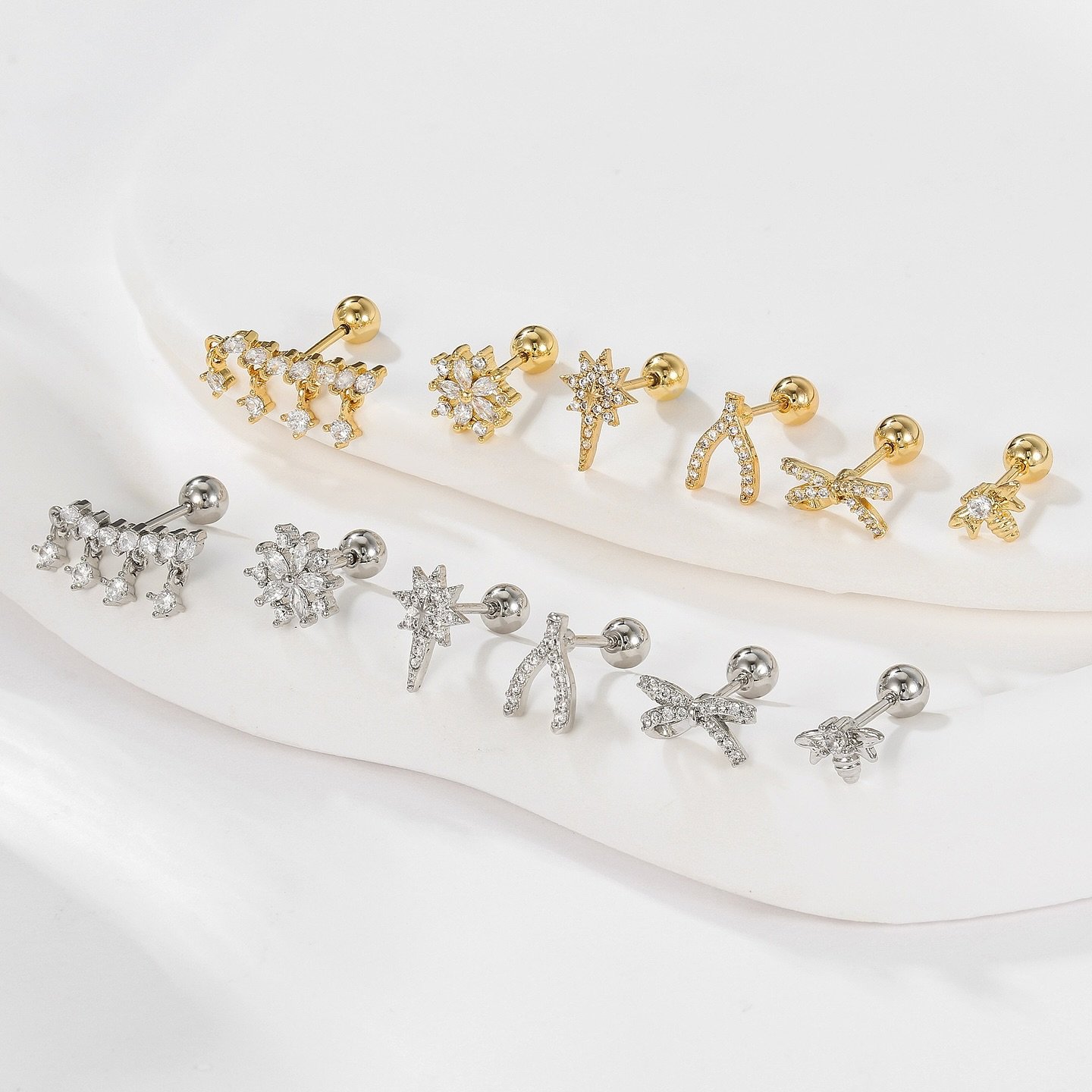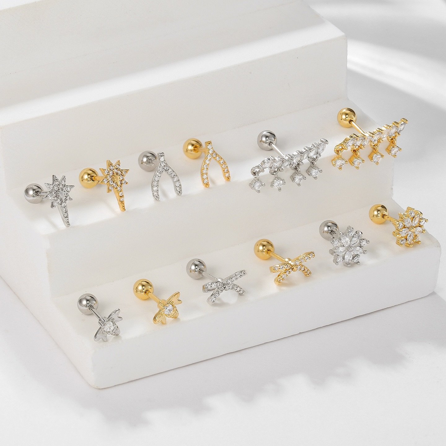 醫療鋼微鑲仿鑽單隻耳環套裝 B(一套6隻)