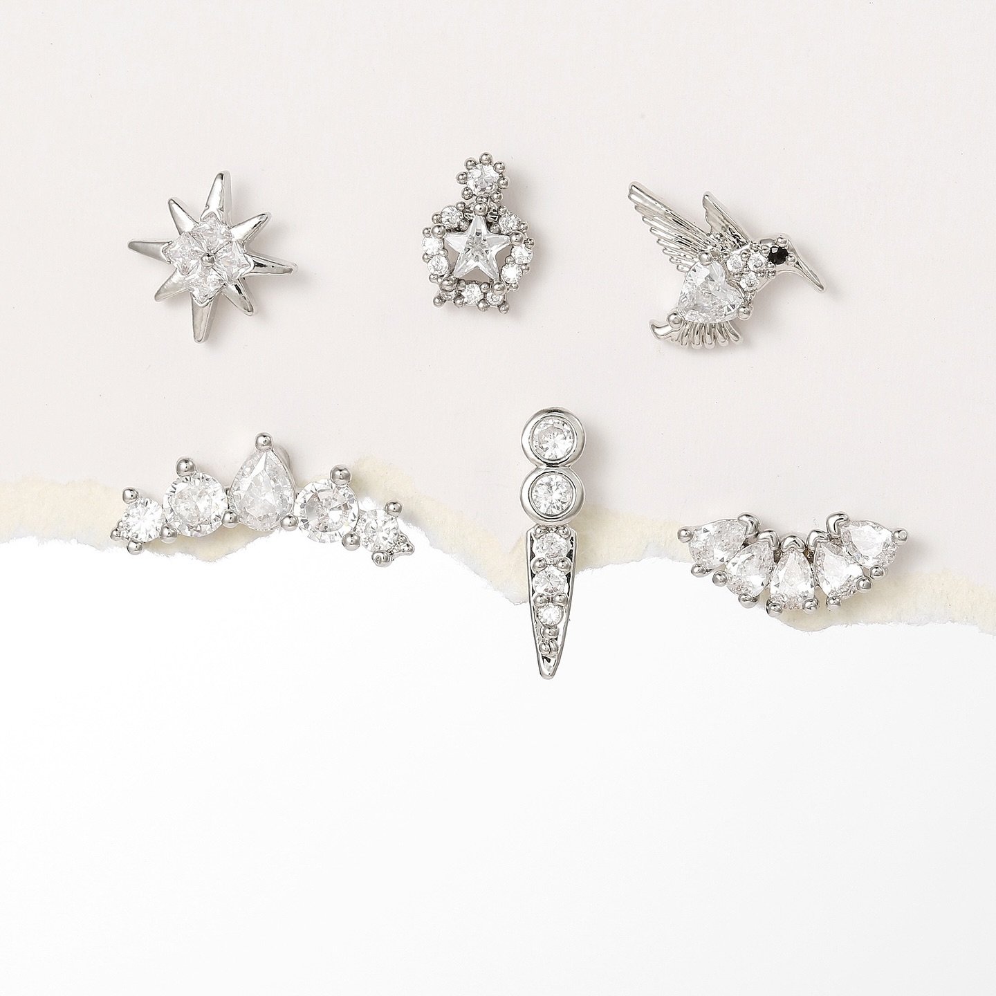 醫療鋼微鑲仿鑽單隻耳環套裝 E(一套6隻)