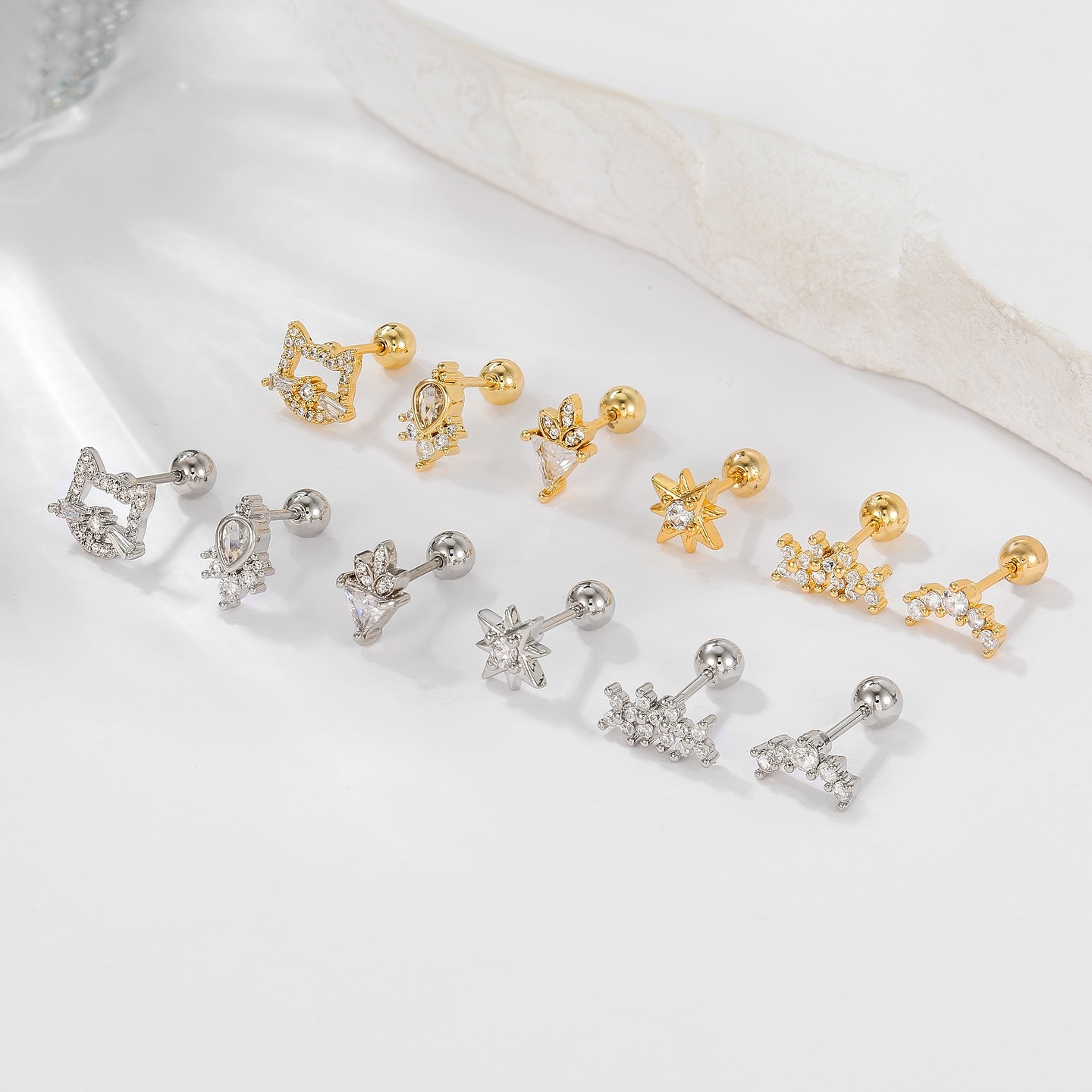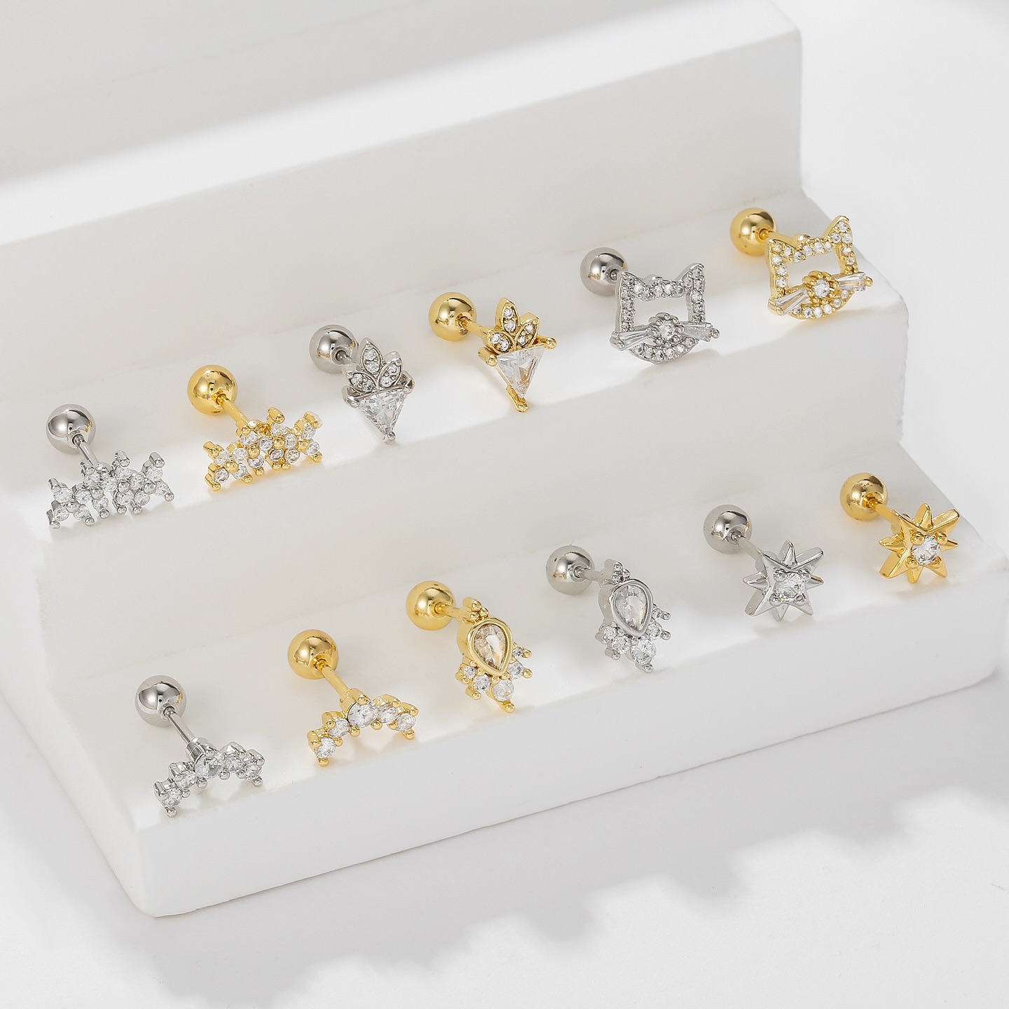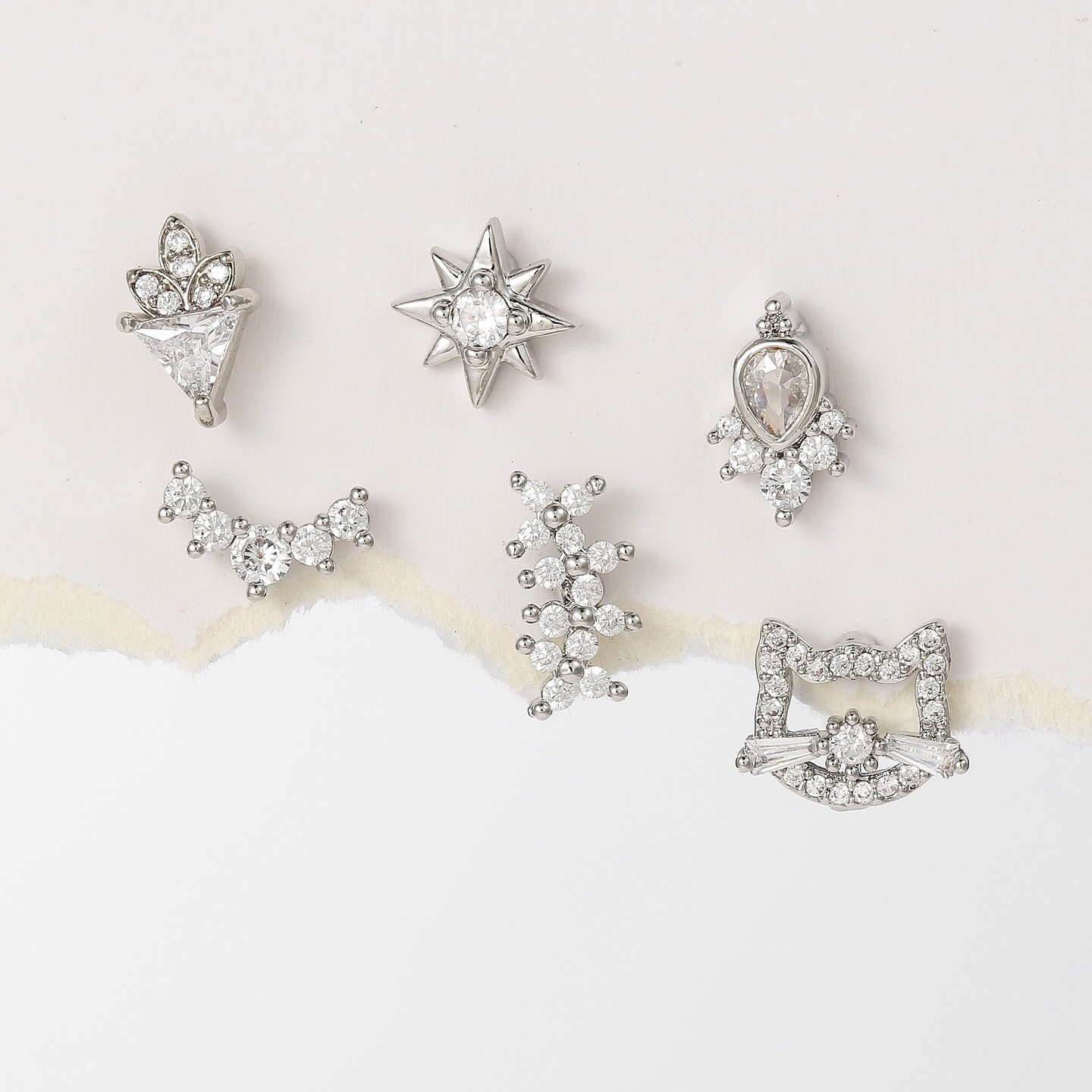 醫療鋼微鑲仿鑽單隻耳環套裝 H(一套6隻)